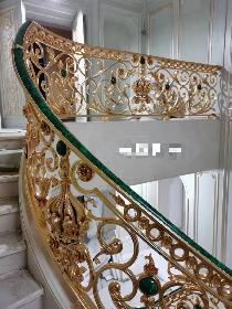 別墅銅藝樓梯-銅樓梯欄桿色彩變化:銅欄桿會(huì)隨著時(shí)間的推移逐漸氧化,形成獨(dú)特的綠色或青銅色,增添了古樸 ..